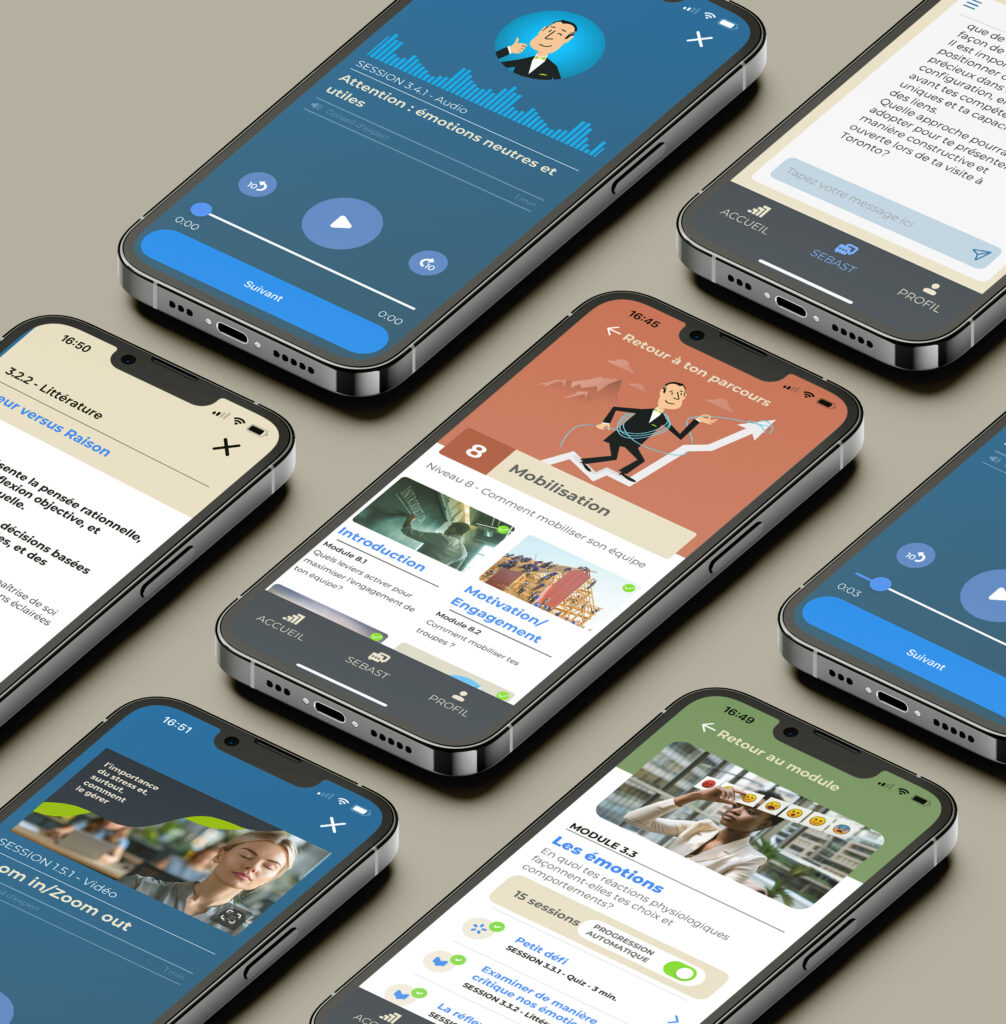 Sebast est une application de coaching exécutif qui repose sur +20h de contenu de formation en gestion. Augmentée par l’IA, disponible 24/7 et entièrement confidentielle, elle s’adresse autant aux gestionnaires de première ligne qu’aux dirigeants exécutifs.